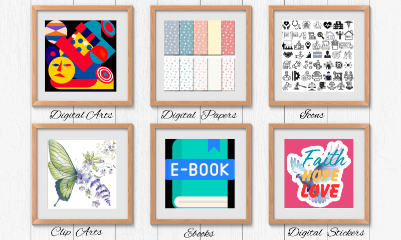 Our product catalog spans a wide range of categories, including Digital Prints, design assets, templates, clipart, e-books and even more. Each product is carefully selected to ensure it meets our stringent standards for quality, innovation, and relevance. We understand that in the fast-paced digital landscape, having access to the right tools and content is crucial, and we strive to be your one-stop destination for all your digital needs.