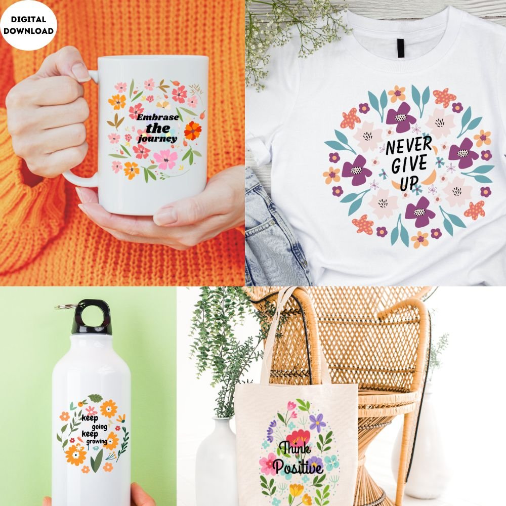 This Boho Floral Motivational PNG Bundle is also great to design Invitations, Stickers, Planner, Mugs, Cell Phone Covers, banners, Cards, Website Design, Digital Albums, Paper Crafts, and much more. They’re great for gifts, DIY cards, or home decor. You can also use them to make your designs even more extra special. The possibilities are boundless!