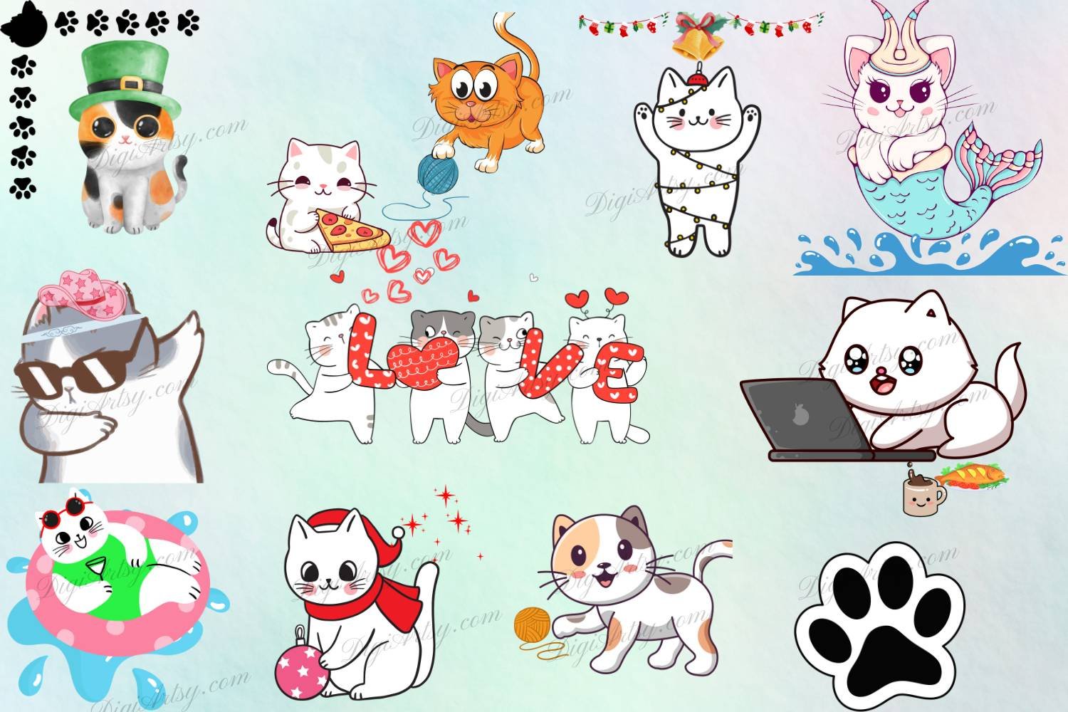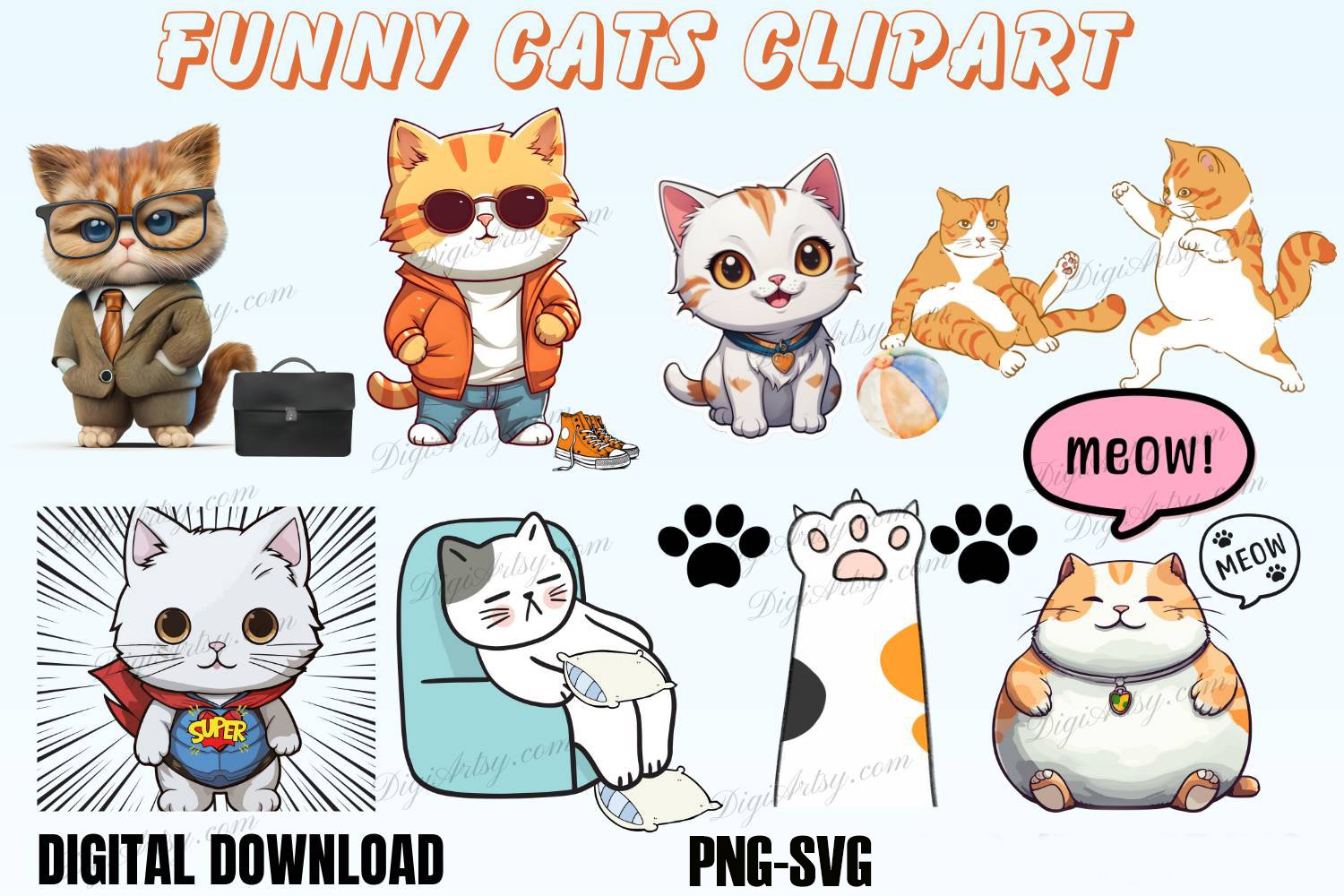 This Funny Cats Digital Cliparts contains 40 files in total
