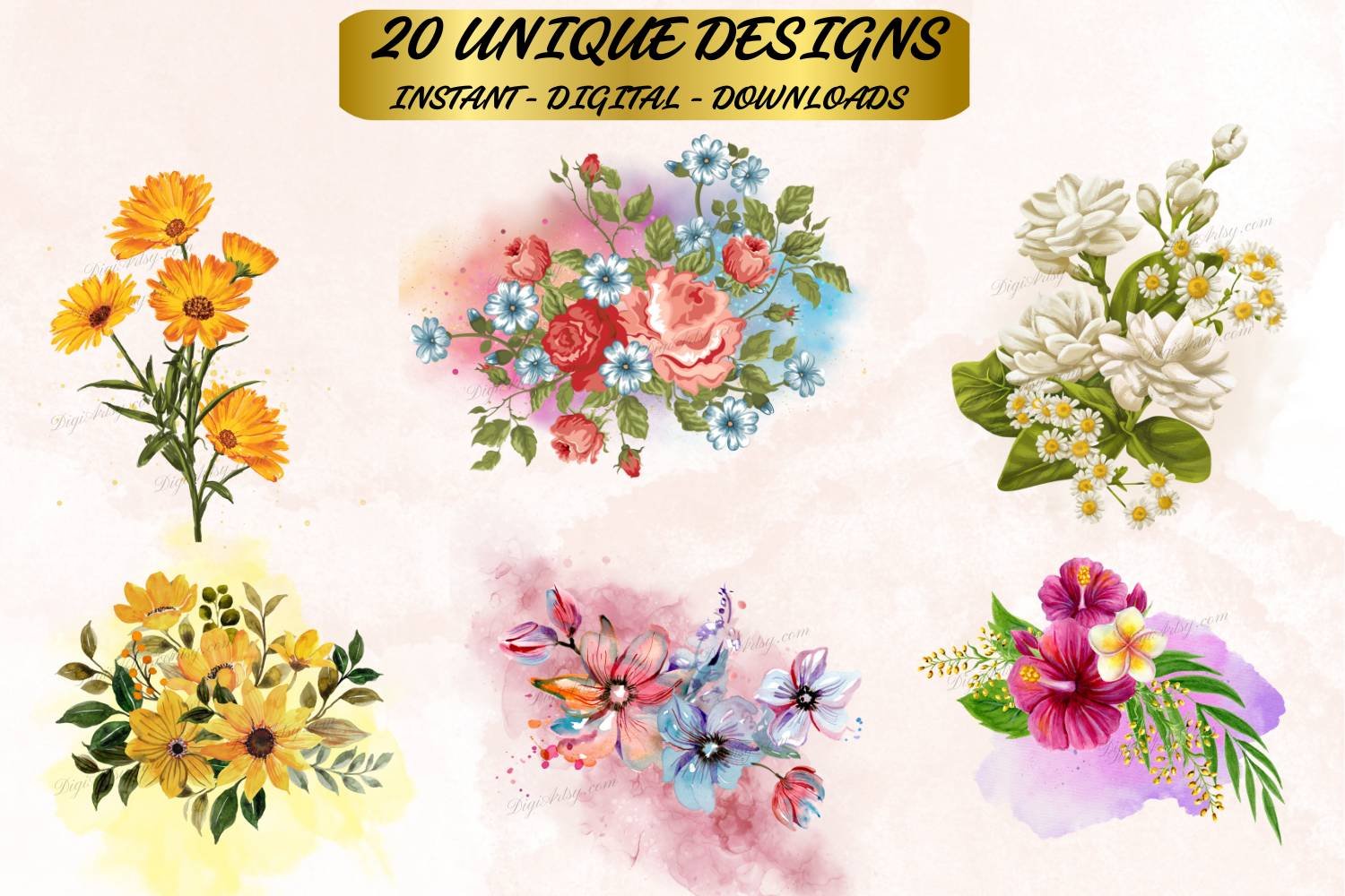 20 Spring Watercolor Flowers Clipart PNG SVG
