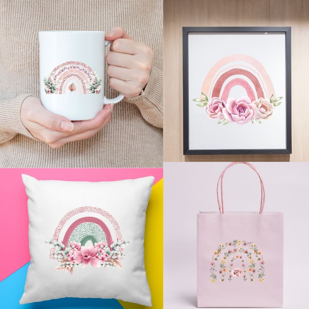 This Boho Floral Rainbow T-Shirt Prints is also perfect to design cards, invitations, scrapbooking, party decoration, poster, social media, print on demand, web design, packing design and much more. These Bright, colorful and delicate, perfect to gift someone. You can also use them to make your designs even more extra special. The possibilities are boundless!