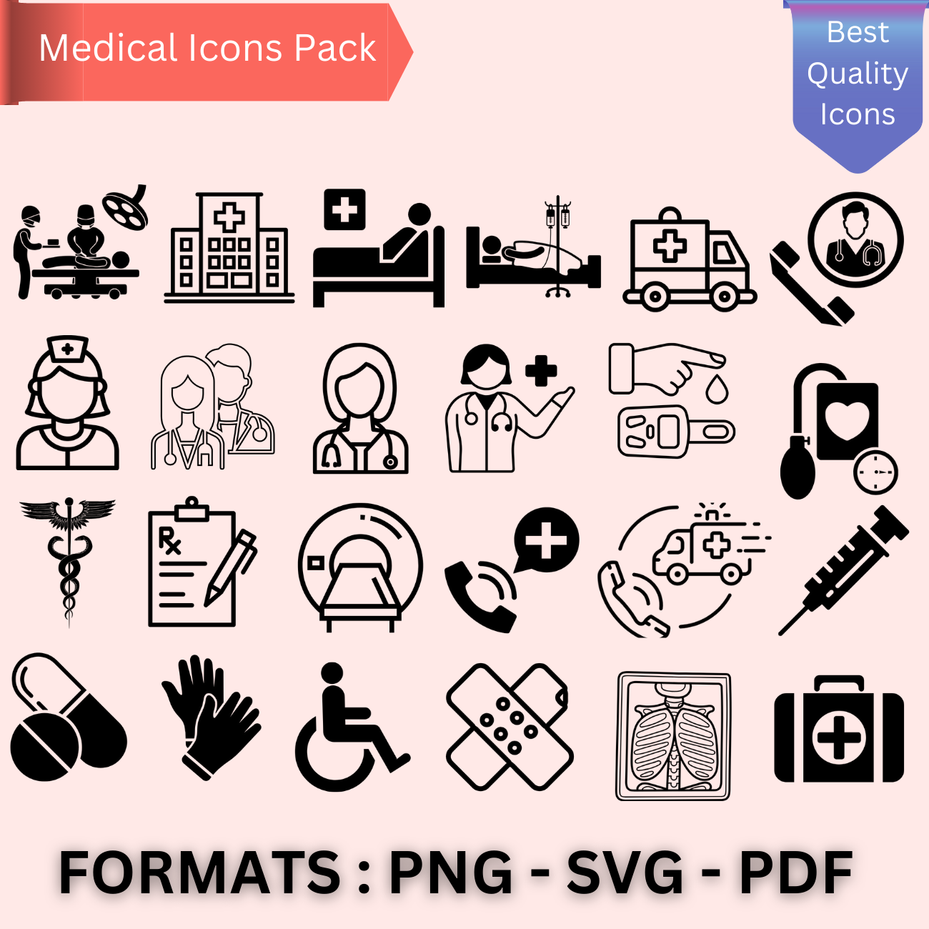 This set of 52 Medical icons pack will add some professional vital details to your designs. Perfect for printable planner stickers, office flyers, websites, brochures, calendars, notebooks, scrapbooking, anything you can come up with! and also comes with transparent PNG files.