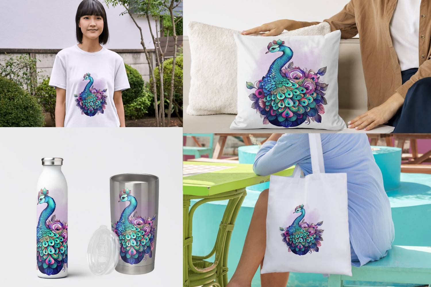 This Beautiful Watercolor Peacock Clipart contains 4 files in total