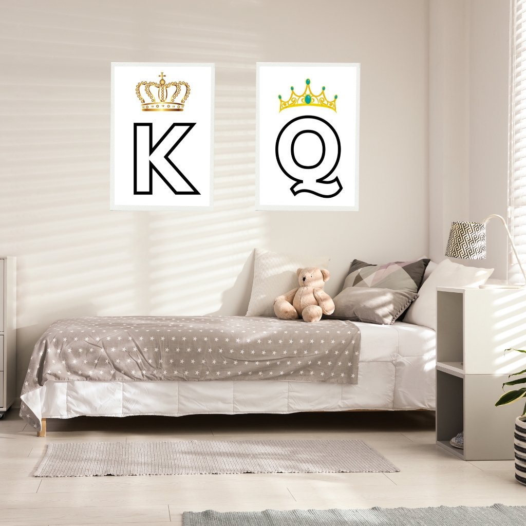 Bedroom Wall Decor King and Queen Set of 2 Prints | Love Couple Art for Bedroom