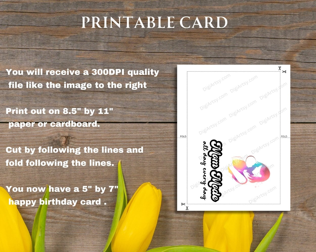 This is an Instant download DIY greeting card so after you purchase you will have immediate access to your printable files. No waiting time, no shipping fees.