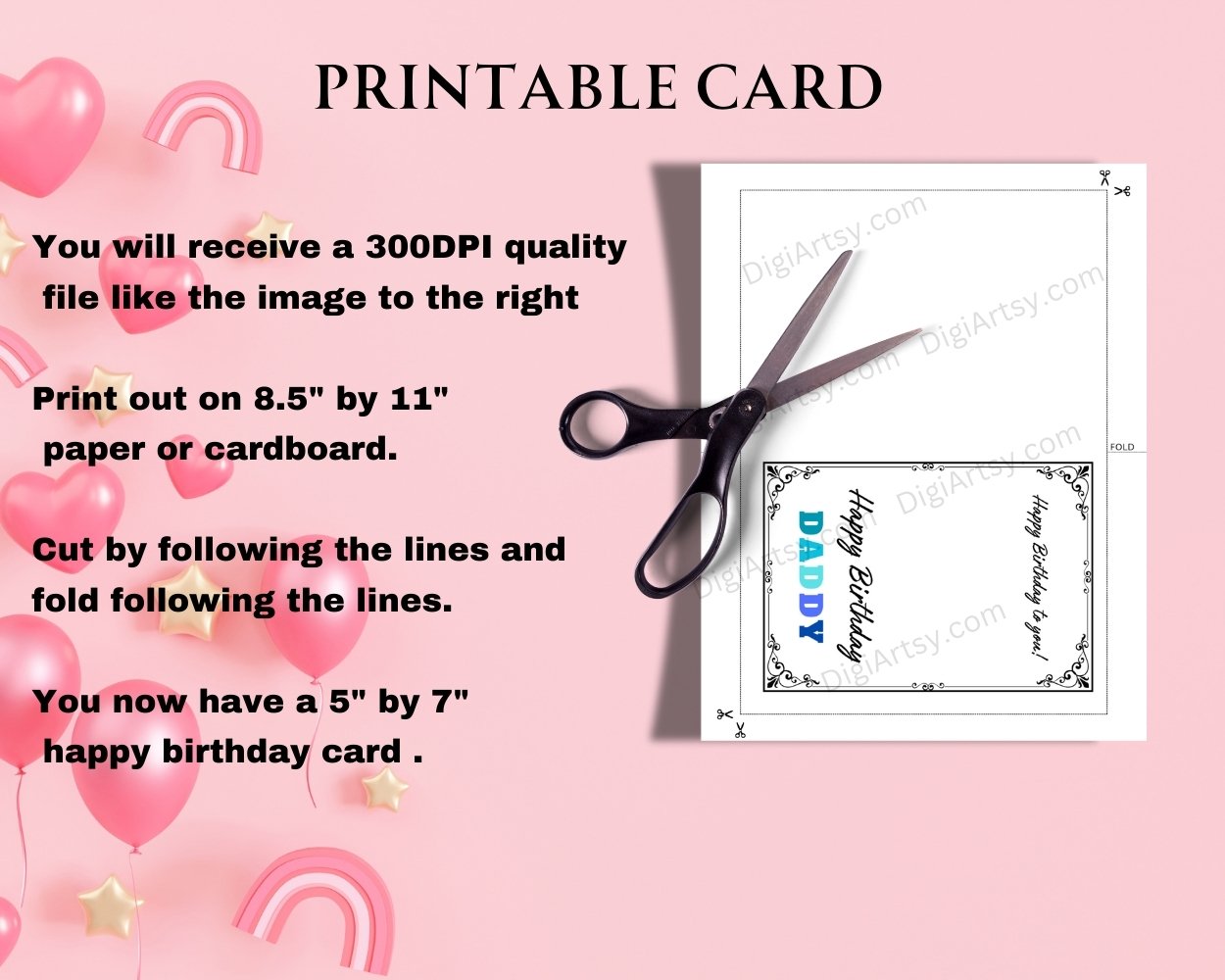 This Happy Birthday Daddy Greeting Card print is Celebrate your amazing Dad with this heartfelt card that is perfect for his birthday. Show your gratitude and love with the message. You can print the digital downloads from home, your local print shop, or you can also upload the files to an online printing service and have your prints delivered to your door!