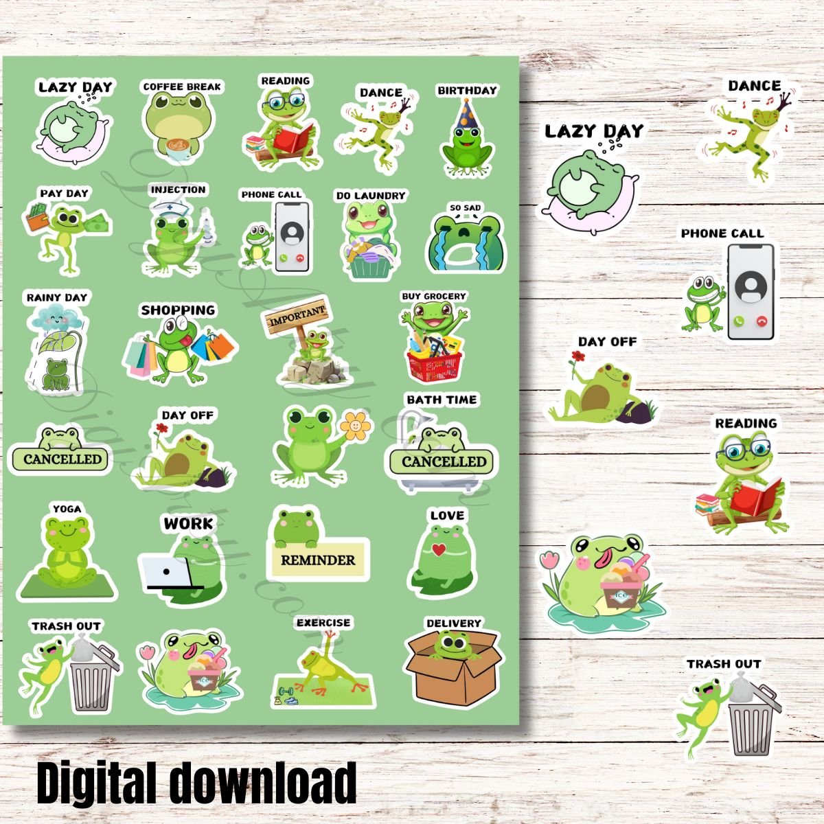 This Cute Frog Stickers for Planner Pack contains 3 files in total