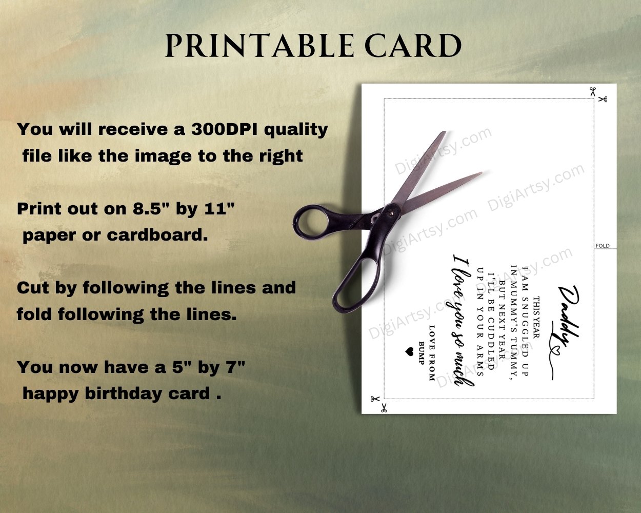 This is an Instant download DIY greeting card so after you purchase you will have immediate access to your printable files. No waiting time, no shipping fees.