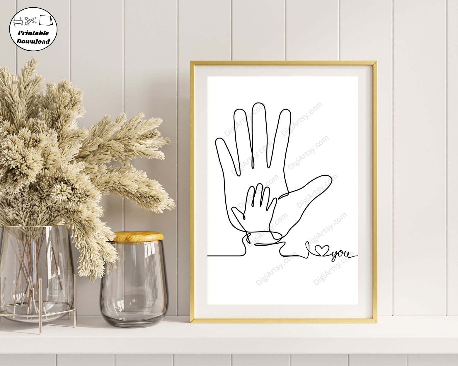 Celebrate the beauty of Fatherhood with this Dad and Baby Handprint Line Art featuring a line drawing of Dad and his baby hand. Perfect for adding a touch of warmth and elegance to any room, this printable Dad wall art is designed in a simple yet sophisticated style. Ideal for modern or minimalist decor, the clean lines and gentle curves of this design will complement any space, from nurseries to living rooms.