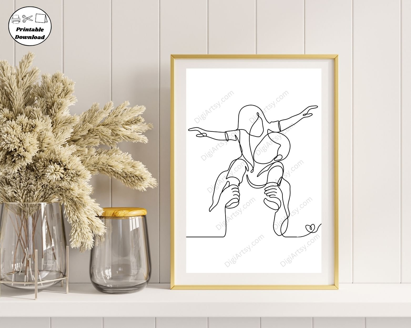 Celebrate the beauty of Fatherhood with this Dad and Daughter Line Art Print featuring a tender moment between a Dad and his daughter. Perfect for adding a touch of warmth and elegance to any room, this printable Dad wall art is designed in a simple yet sophisticated style. Ideal for modern or minimalist decor, the clean lines and gentle curves of this design will complement any space, from nurseries to living rooms.