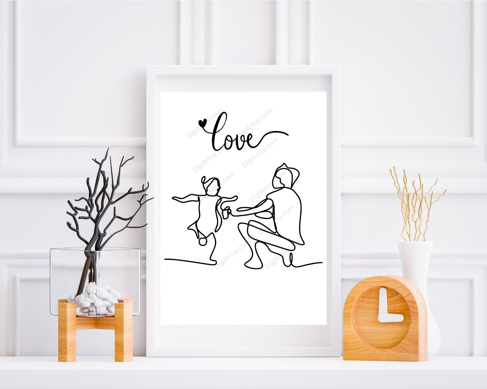 Father and Daughter Line Art Wall Decor