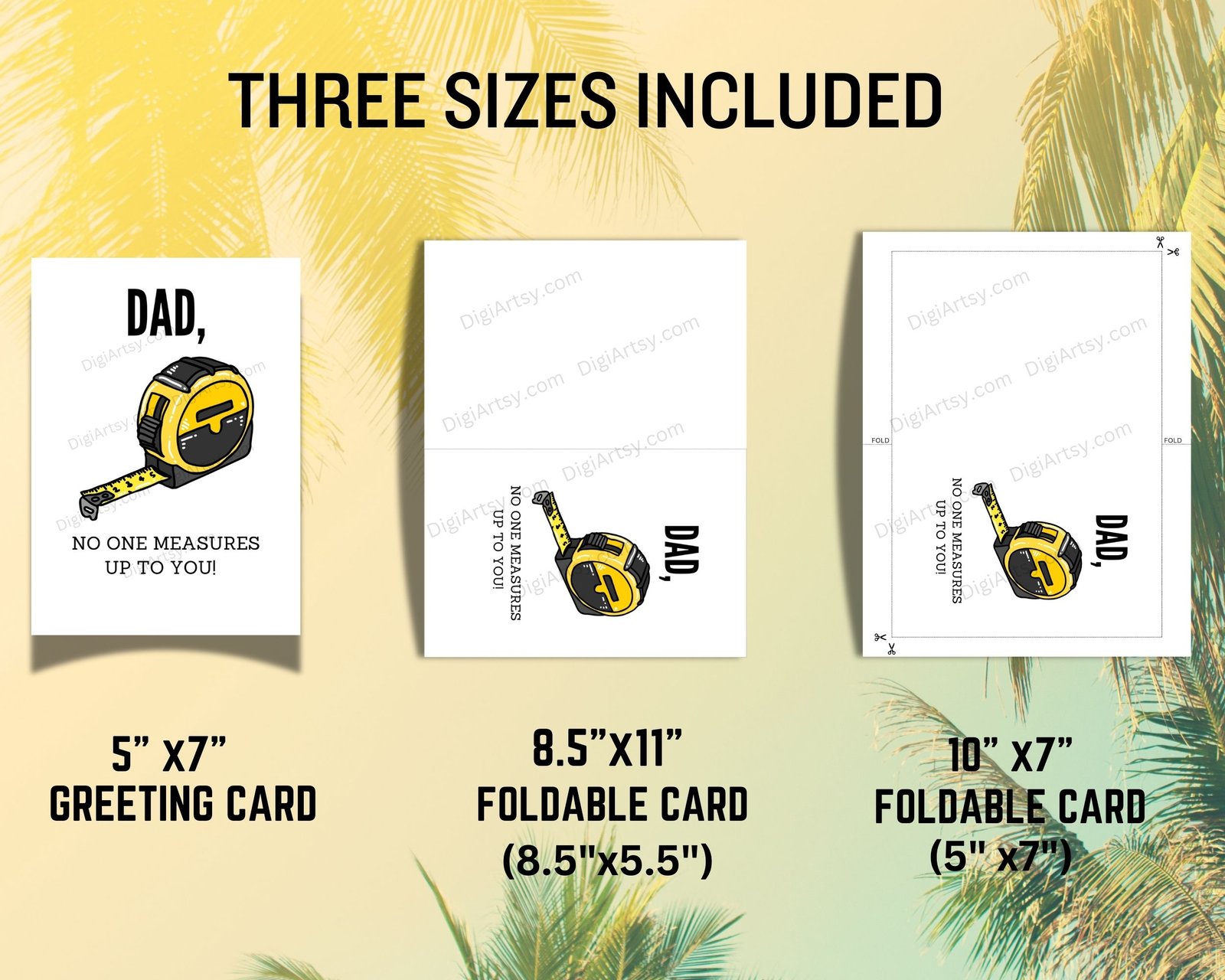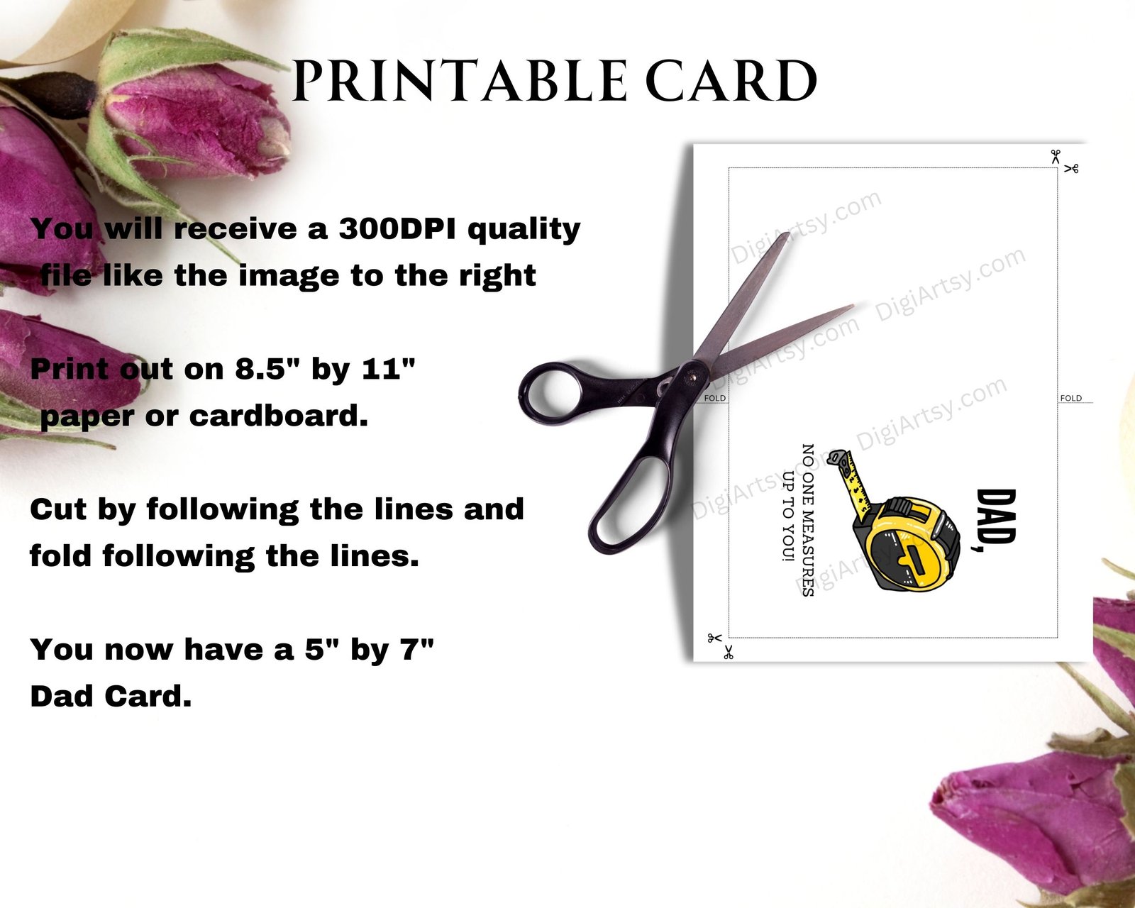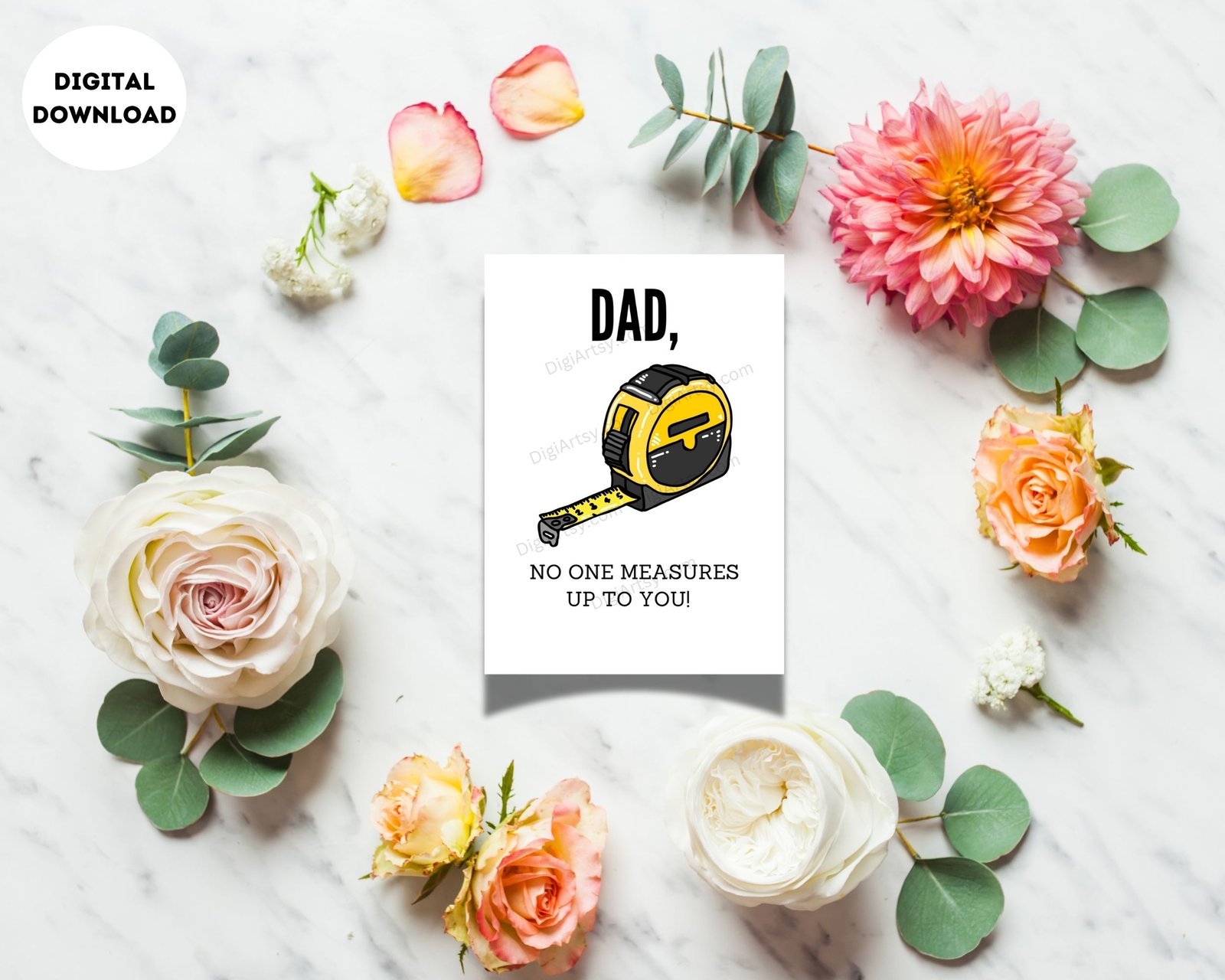 This Dad Card Print No One Measures Up to You is to celebrate your amazing Dad with this heartfelt card that is perfect for Father’s Day or his birthday. Show your gratitude and love with the message. You can print the digital downloads from home, your local print shop, or you can also upload the files to an online printing service and have your prints delivered to your door!
