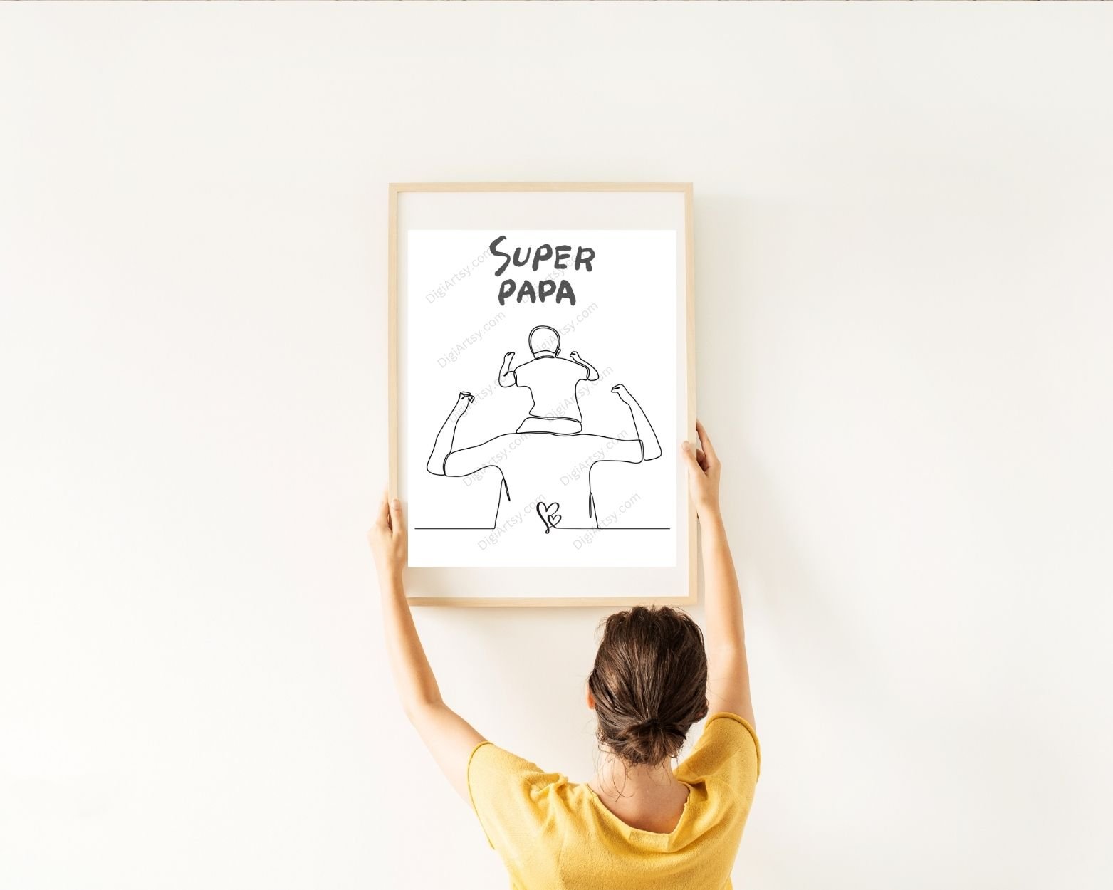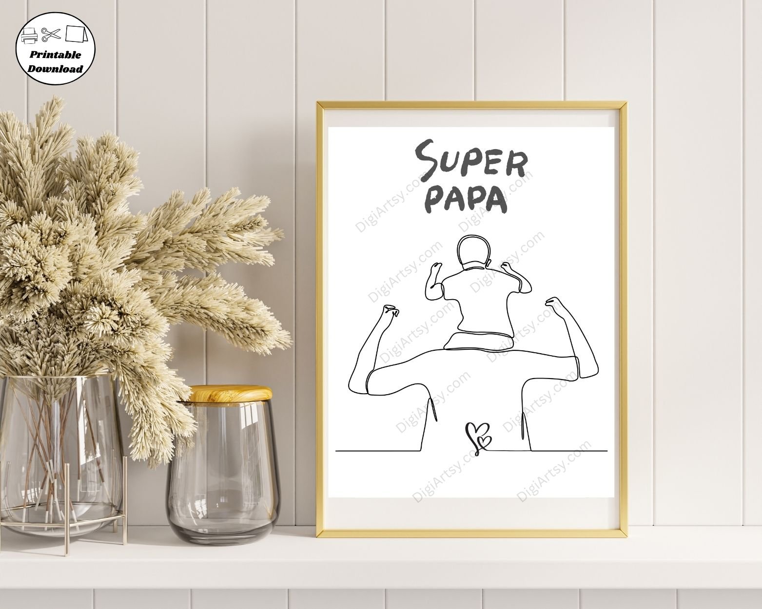 Celebrate the beauty of Fatherhood with this Father and Child Home Decor Gift featuring a tender moment between a Dad and her baby. Perfect for adding a touch of warmth and elegance to any room, this printable Dad wall art is designed in a simple yet sophisticated style. Ideal for modern or minimalist decor, the clean lines and gentle curves of this design will complement any space, from nurseries to living rooms.