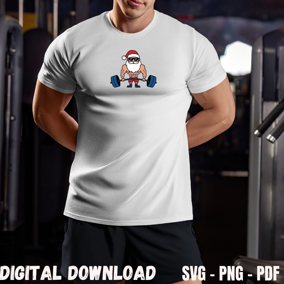 Unleash your inner strength and love of fitness with this bold Fitness Enthusiasts T-Shirt Design Print Santa! Ideal For Gym Lovers, Bodybuilders, Sportsman, Or Anyone Who is Serious about Gym and fitness, this design pack includes a high-resolution Transparent PNG file (no Background). Design your own personalized gym T-shirts, tank tops, gym bags or workout gear and let your fitness goals do the talking!
