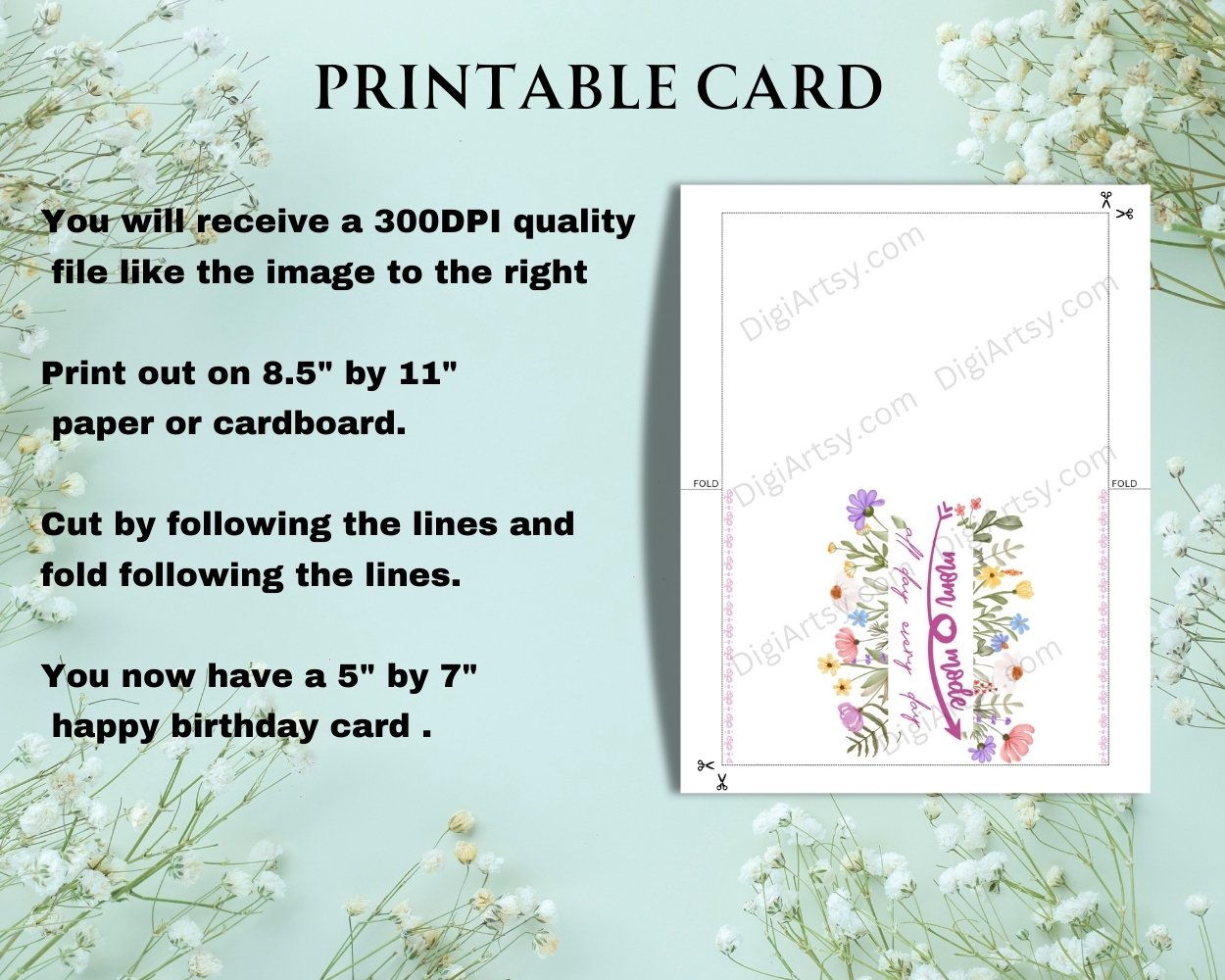 This is an Instant download DIY greeting card so after you purchase you will have immediate access to your printable files. No waiting time, no shipping fees.