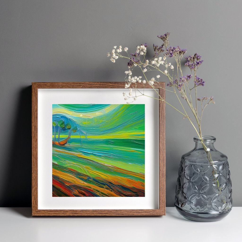 There are a multiple ways you can print your sunrise Green abstract landscape print