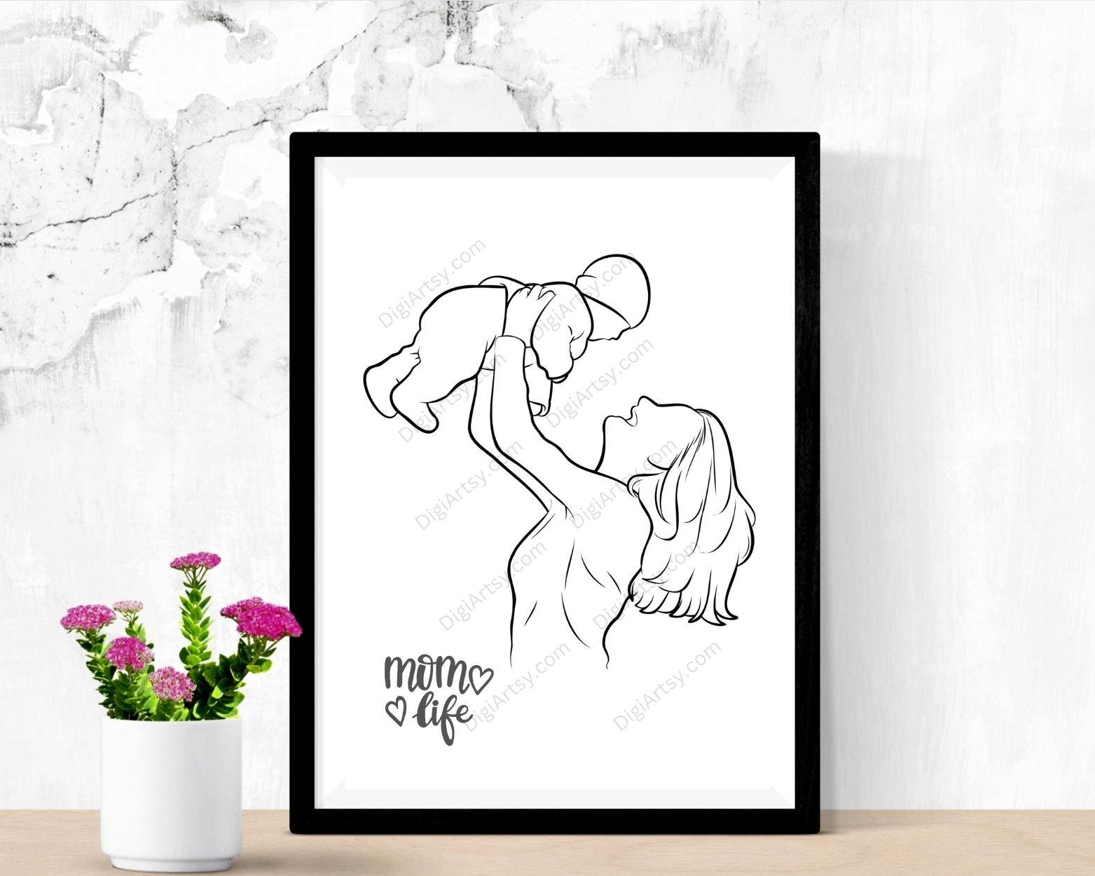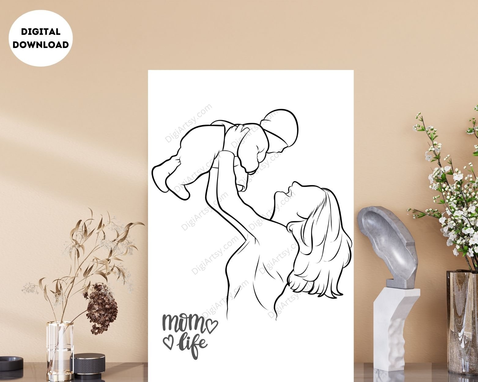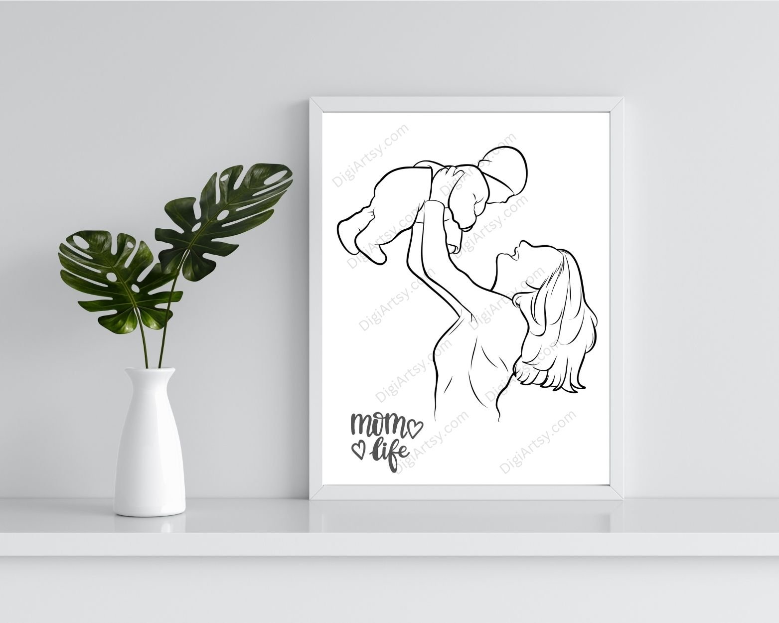 Celebrate the beauty of motherhood with this Mom and Child Wall Art Print featuring a tender moment between a mom and her baby. Perfect for adding a touch of warmth and elegance to any room, this printable wall art is designed in a simple yet sophisticated style. Ideal for modern or minimalist decor, the clean lines and gentle curves of this design will complement any space, from nurseries to living rooms.