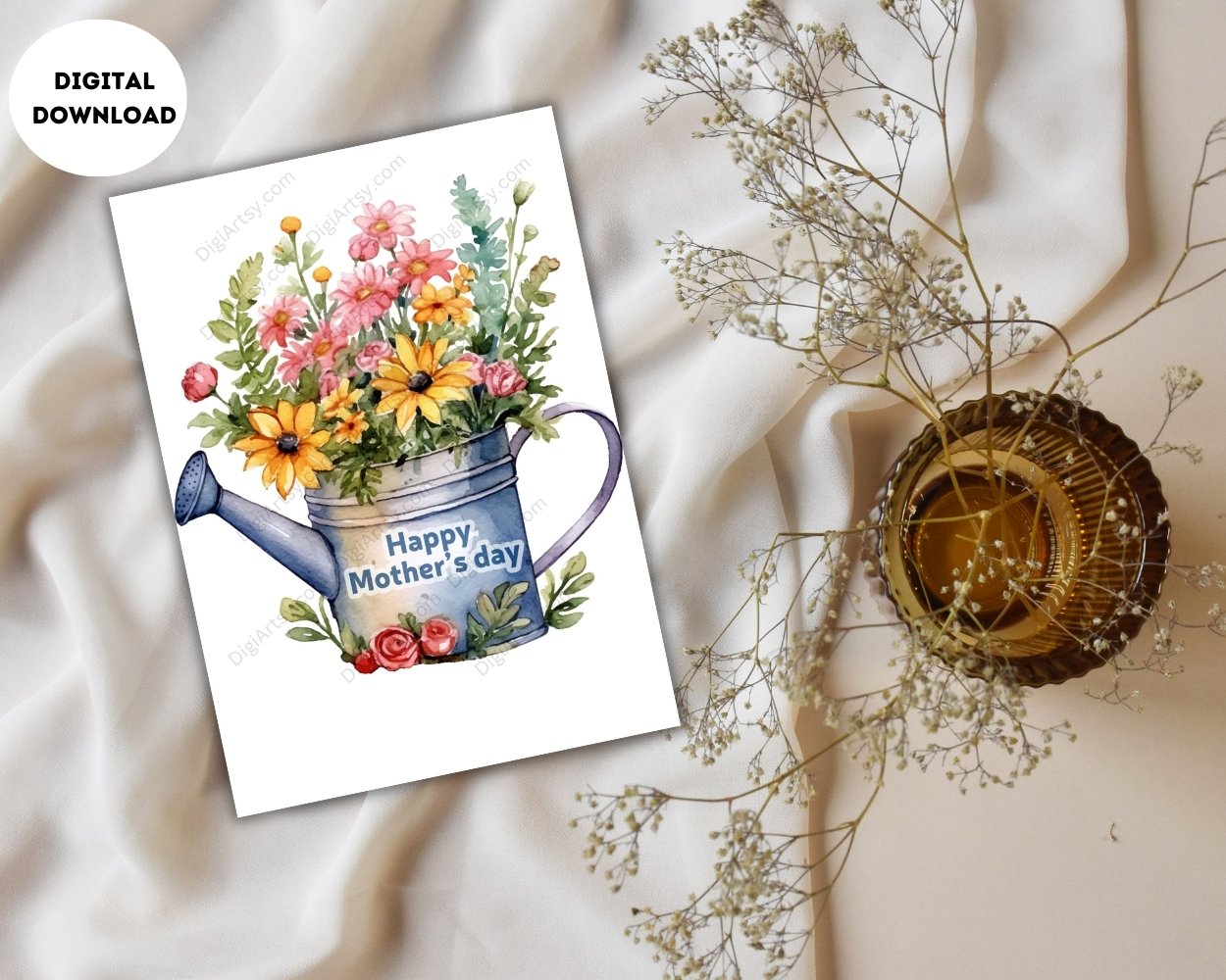 Happy Mother’s Day Digital Print with Watercolor Flowers
