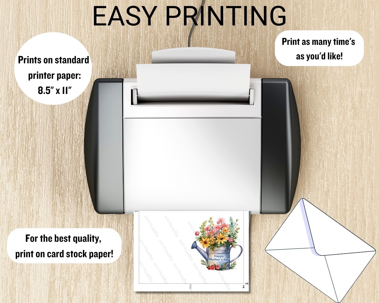 There are a multiple ways you can print your Happy Mother’s Day Digital Print.