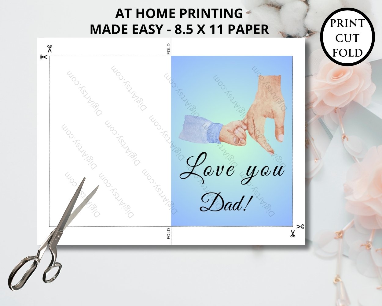This Love You Dad Greeting Card Print Blue is to Celebrate your amazing Dad with this heartfelt card that is perfect for Father’s Day or his birthday. Show your gratitude and love with the message. You can print the digital downloads from home, your local print shop, or you can also upload the files to an online printing service and have your prints delivered to your door!