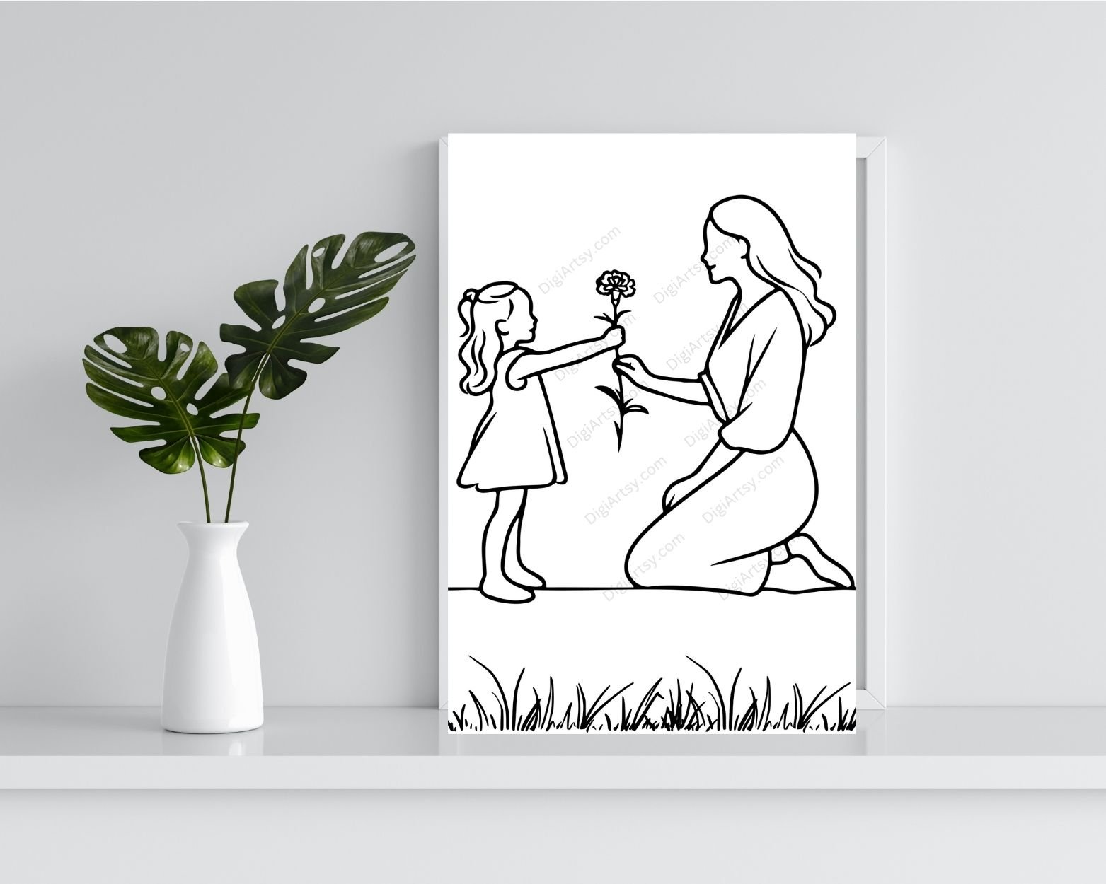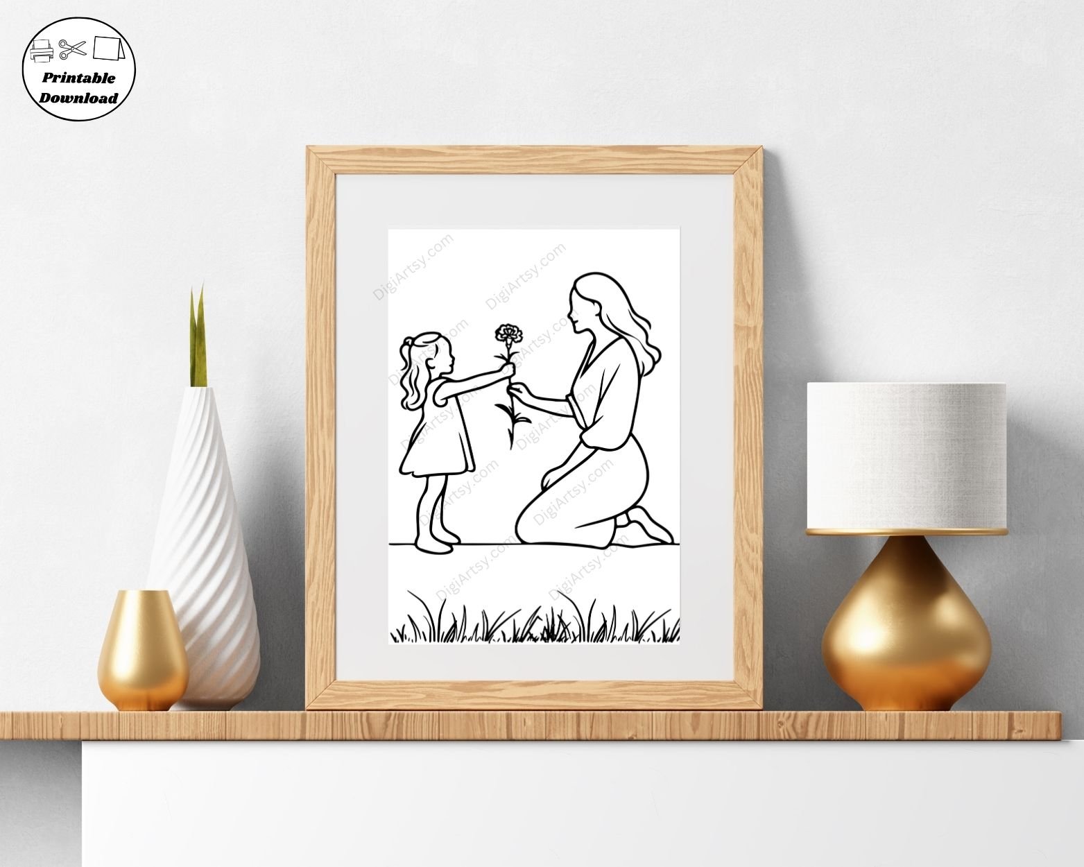 Celebrate the beauty of motherhood with this Mom and Daughter Wall Art Print featuring a tender moment between a mom and her daughter. Perfect for adding a touch of warmth and elegance to any room, this printable wall art is designed in a simple yet sophisticated style. Ideal for modern or minimalist decor, the clean lines and gentle curves of this design will complement any space, from nurseries to living rooms.