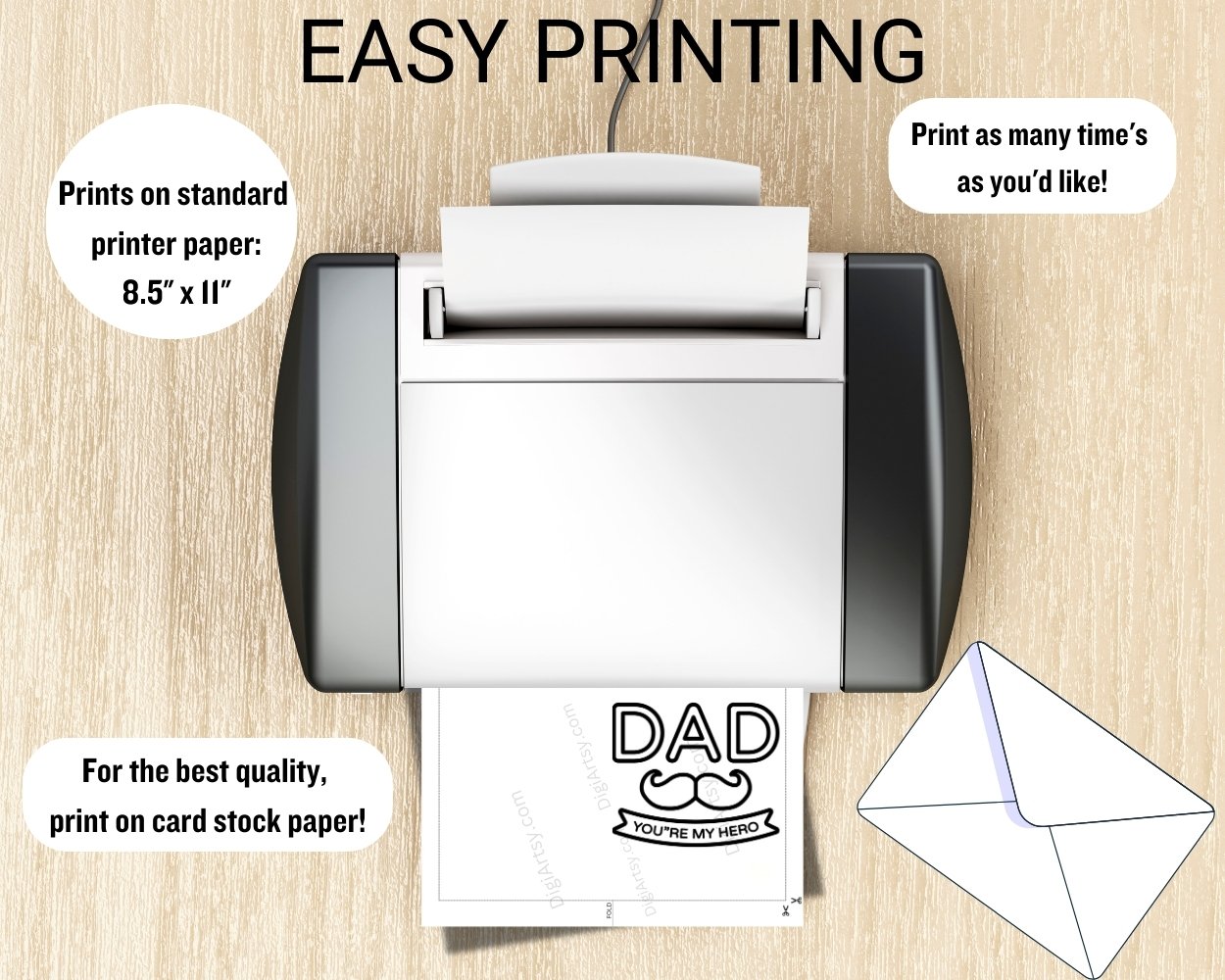 There are a multiple ways you can print your Dad’s Greeting Card.