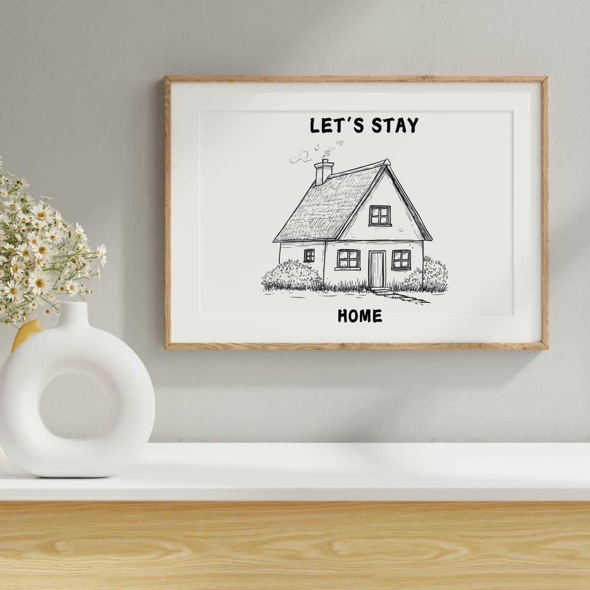 Moody Neutral Vintage Art Print Let’s Stay Home
