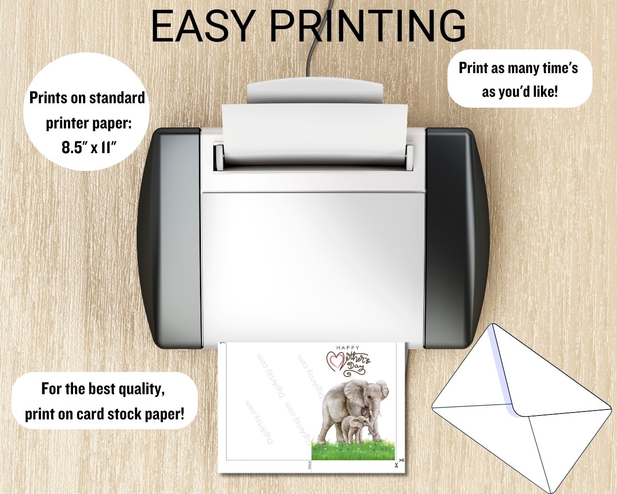 There are a multiple ways you can print your Mom’s Greeting Card.