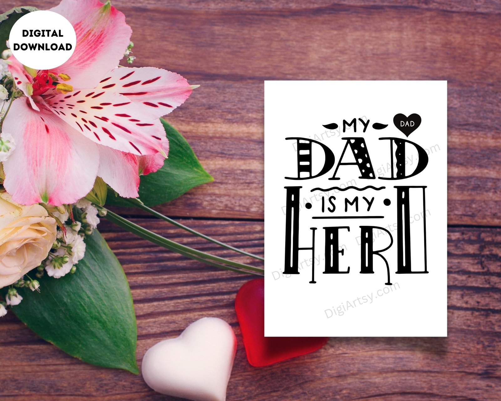 This My Dad is My Hero Digital Card for Dad is to Celebrate your amazing Dad with this heartfelt card that is perfect for Father’s Day or his birthday. Show your gratitude and love with the message. You can print the digital downloads from home, your local print shop, or you can also upload the files to an online printing service and have your prints delivered to your door!