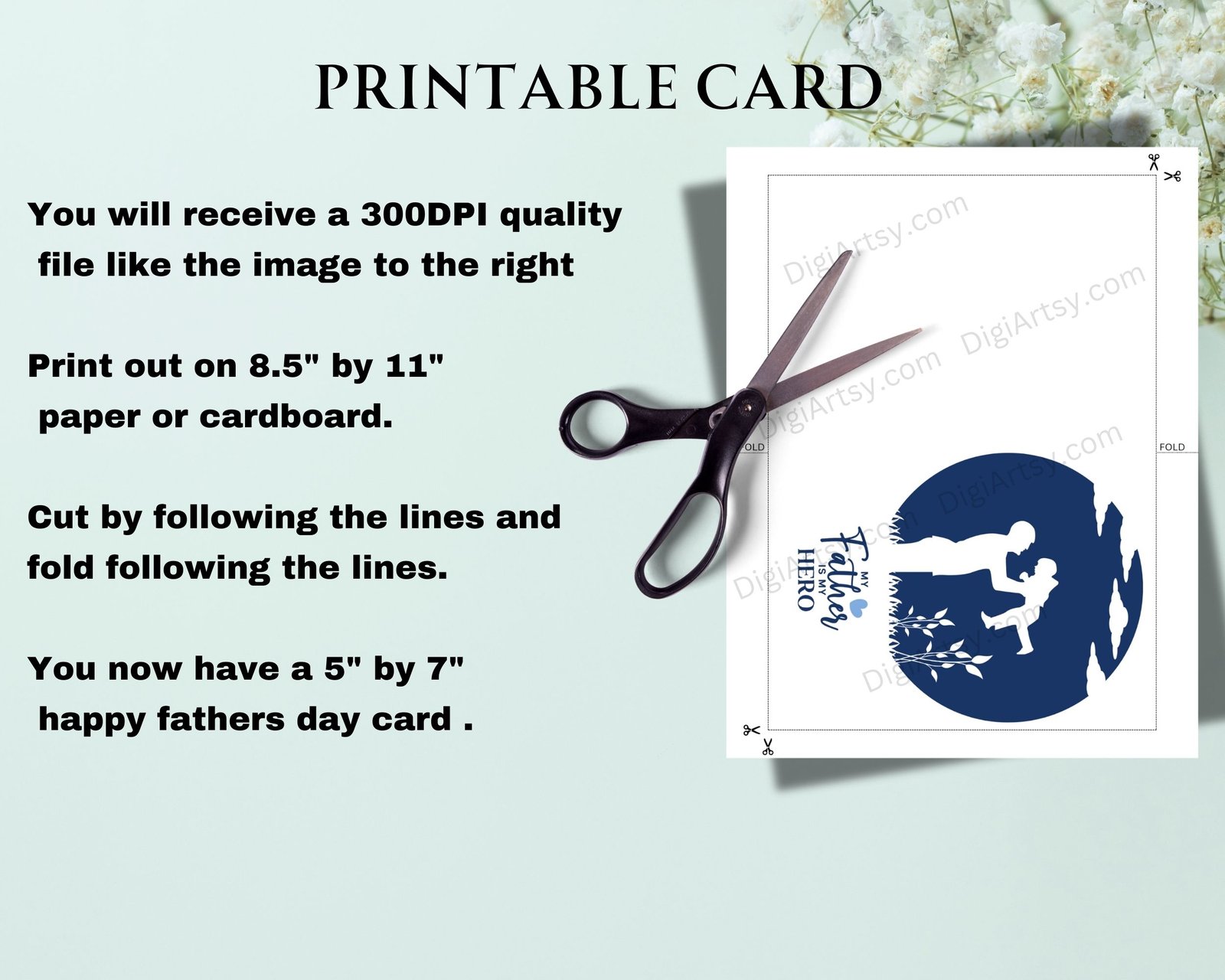 This My Father is My Hero Greeting Card for Dad is great for letting your loved one’s know they loved so much this Father’s Day or his birthday. Show your gratitude and love with the message. You can print the digital downloads from home, your local print shop, or you can also upload the files to an online printing service and have your prints delivered to your door!