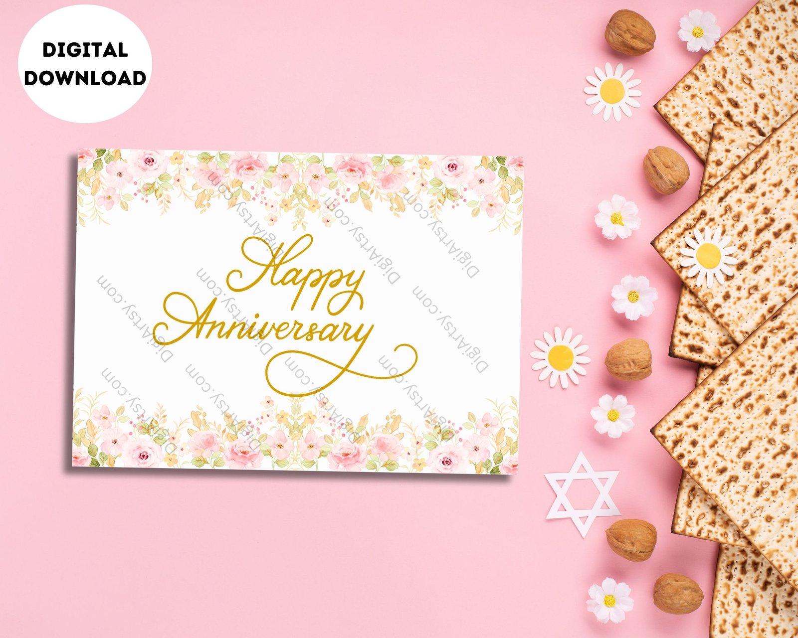 This Pastel Floral Happy Anniversary Card Printable contains 6 files in total
