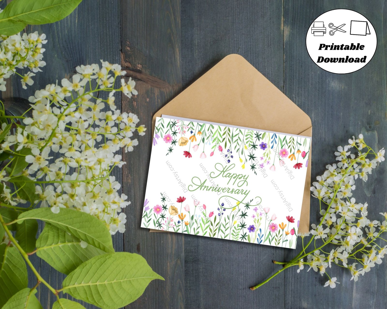 Watercolor Floral Happy Anniversary Card