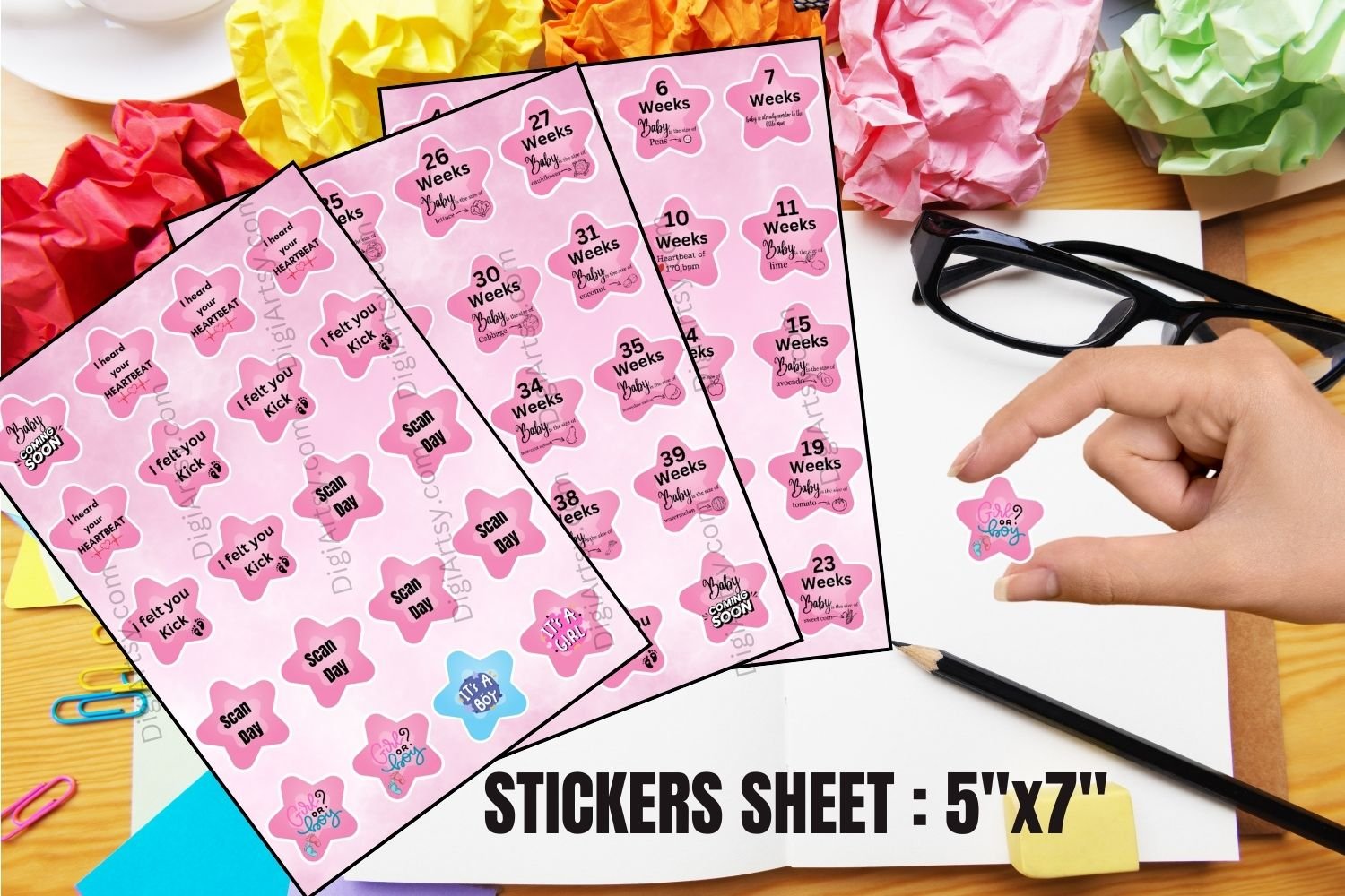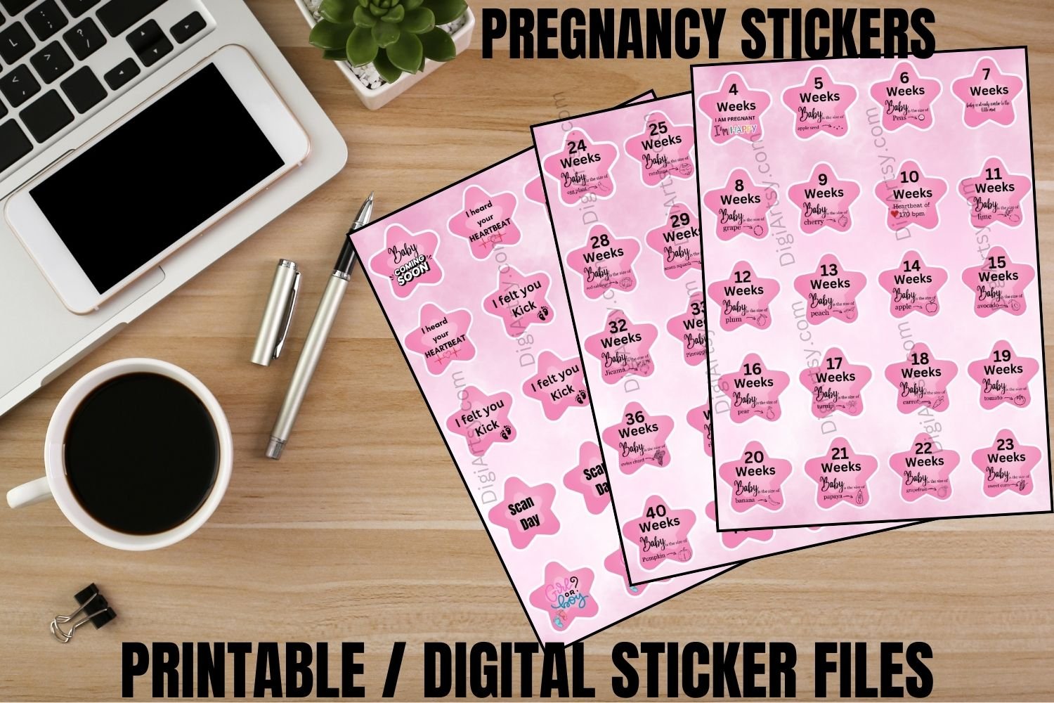 These Pregnancy Weeks Sticker Set Bundle is best for both Digital Planners and Diary.
