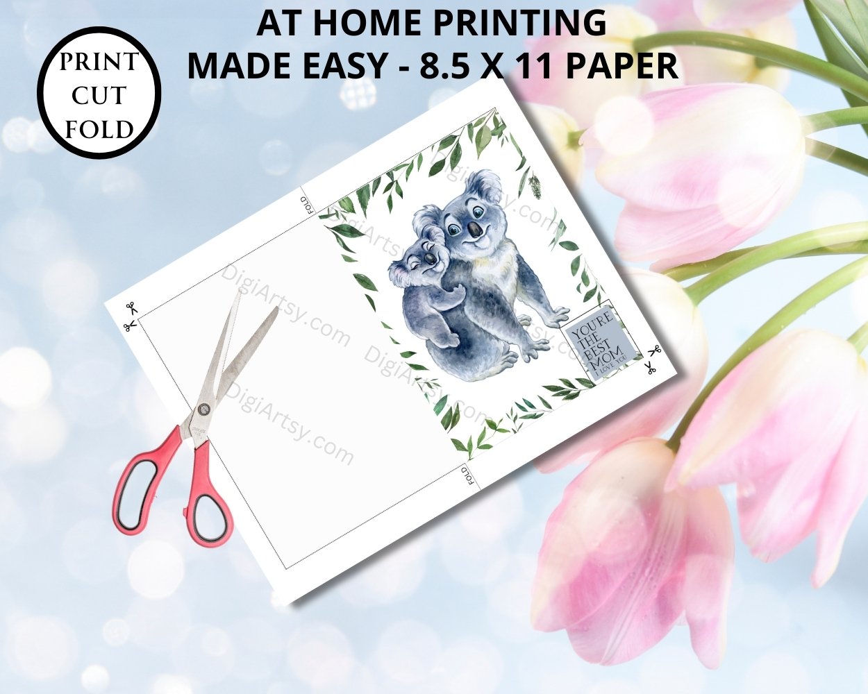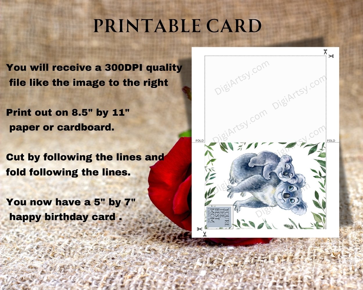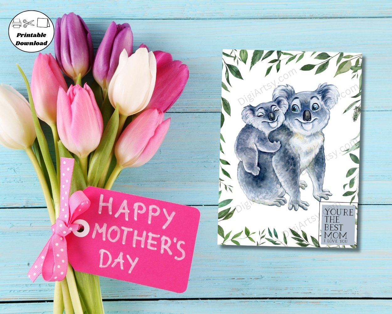 This Printable Mother’s Day Card is Celebrate your amazing mom with this heartfelt card that is perfect for Mother’s Day or her birthday. This design features a kola and reads “You Are the Best Mom. I Love You.” You can print the digital downloads from home, your local print shop, or you can also upload the files to an online printing service and have your prints delivered to your door!