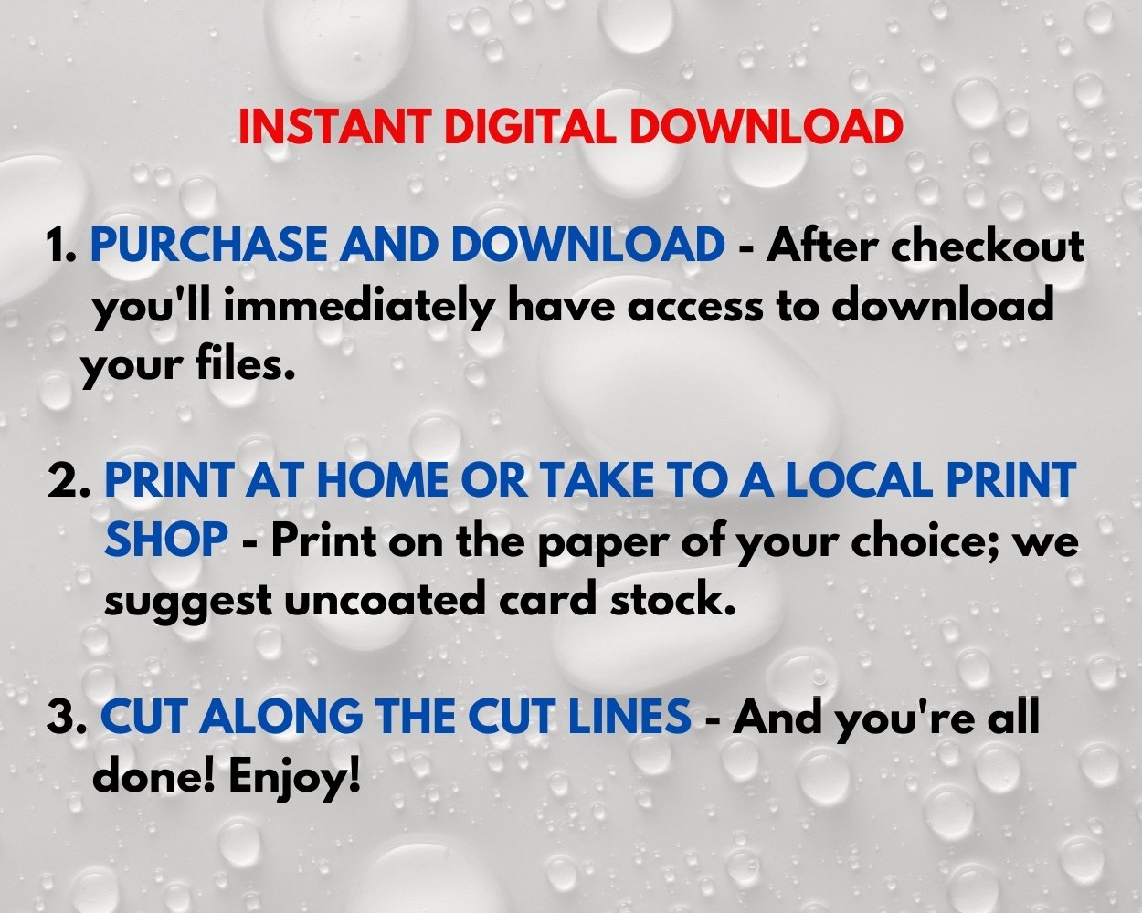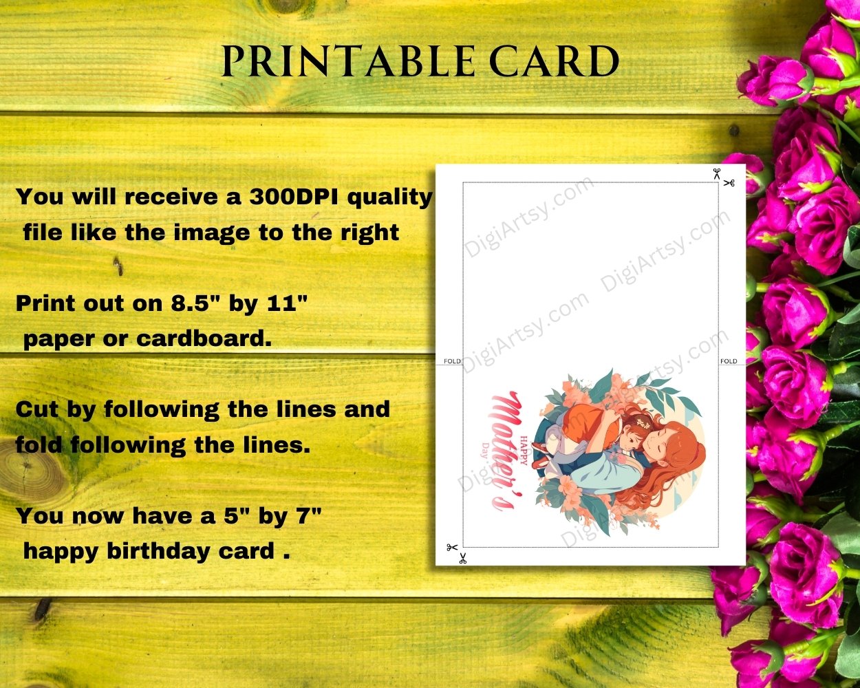 This is an Instant download DIY greeting card so after you purchase you will have immediate access to your printable files. No waiting time, no shipping fees.