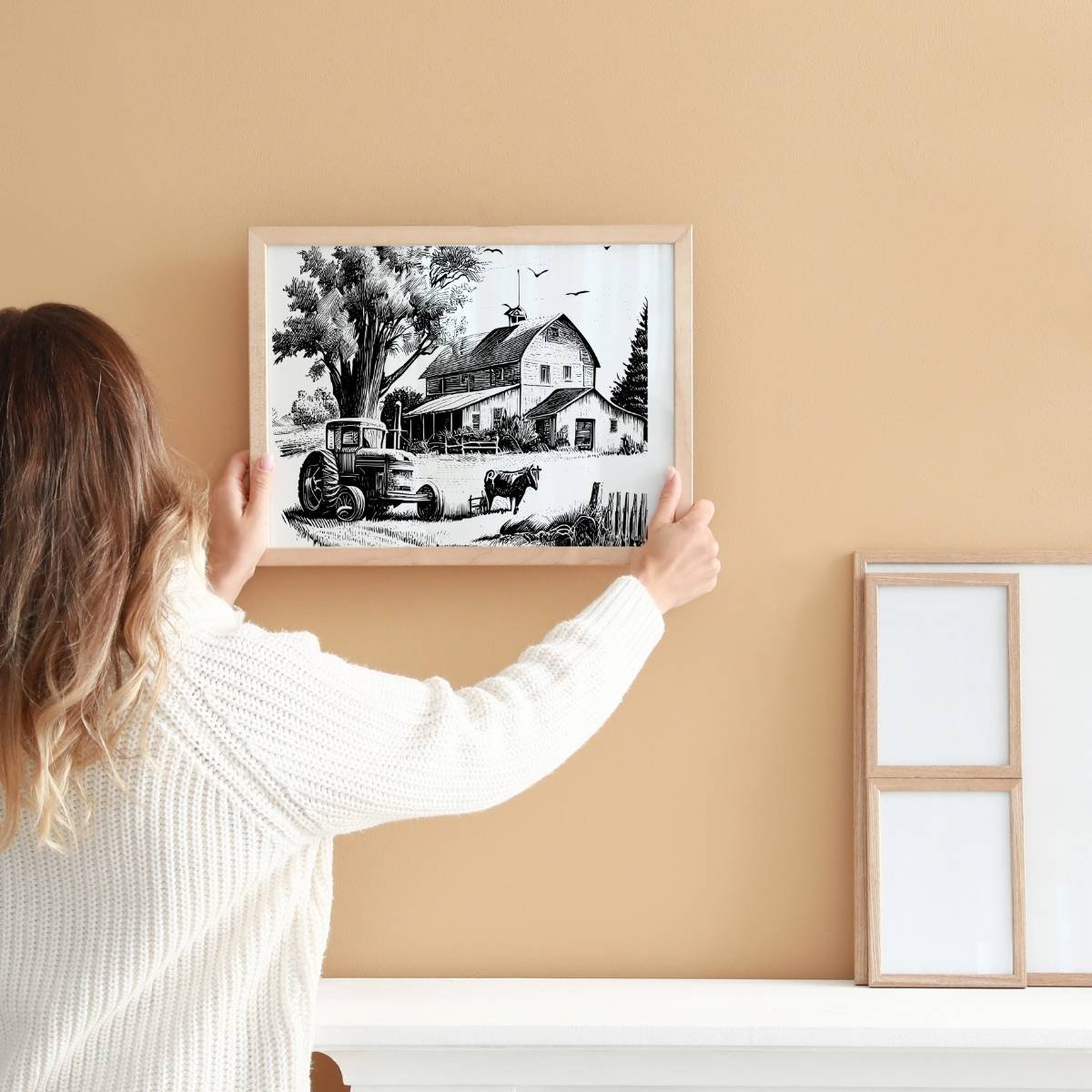This Vintage Black and white Village Wall Art contains 2 files in total