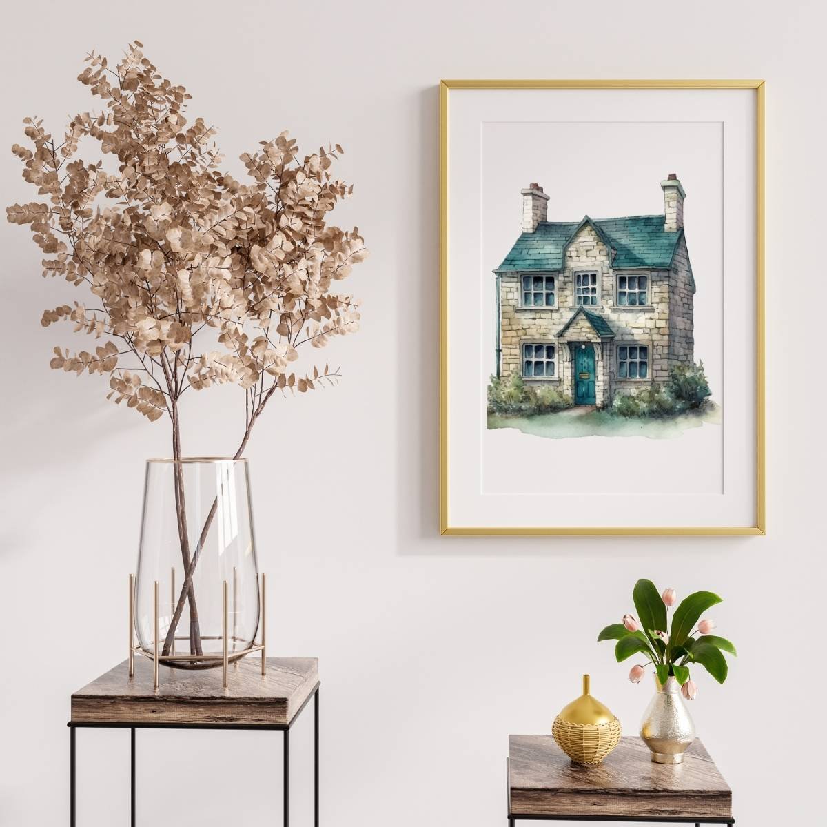 Enhance the quality of your space with Watercolor House minimalist wall art. A Vintage sketch that adds an elegant touch of class to any room whilst keeping to a neutral colour theme. This is something you can decorate and feature as an accent to add to some eclectic gallery wall, a small print sitting on a shelf, counter or as a large-scale statement wall piece. A great vintage art sketch drawing for your gallery wall decor!