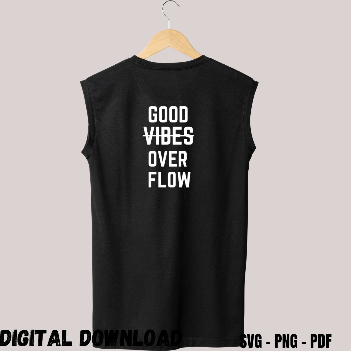 Unleash your inner strength and love of fitness with this bold Workout Sayings Design Print Good Vibes Over Flow! Ideal For Gym Lovers, Bodybuilders, Sportsman, Or Anyone Who is Serious about Gym and fitness, this design pack includes a high-resolution Transparent PNG file (no Background). Design your own personalized gym T-shirts, tank tops, gym bags or workout gear and let your fitness goals do the talking!