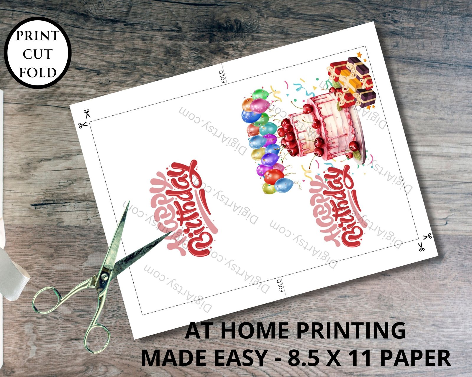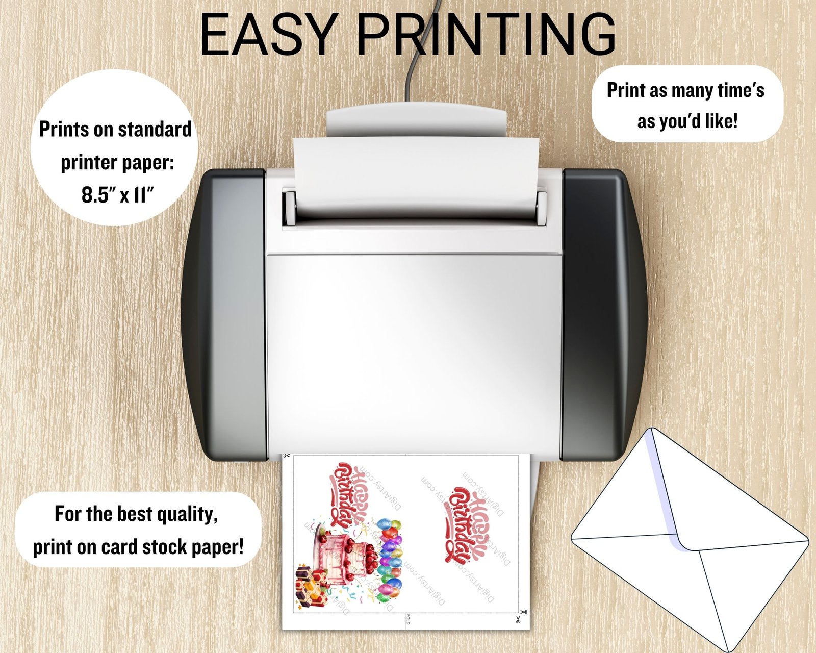 This Yummy Happy Birthday Card Print with Cake is great for letting your loved one’s know they are loved so much this birthday. You can print the digital downloads from home, your local print shop, or you can also upload the files to an online printing service and have your prints delivered to your door!